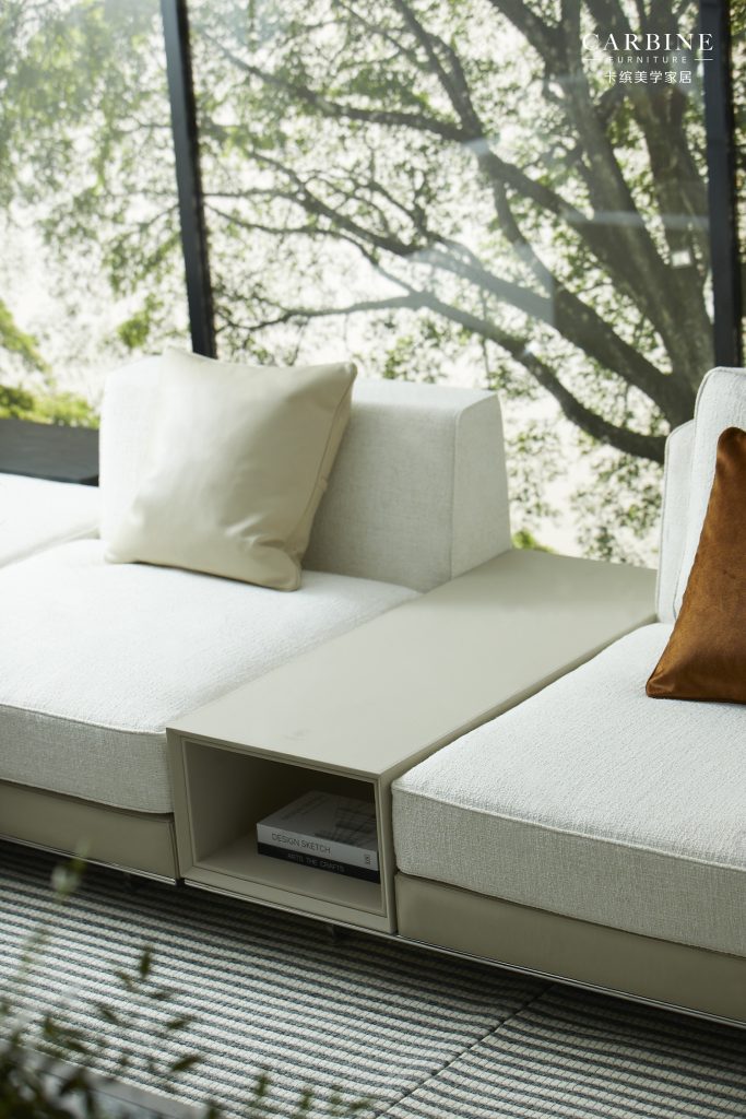 Its modular configuration system allows for flexible compositions, from classic straight seating to expansive sectional layouts, making it suitable for a wide range of spatial requirements. The seating structure incorporates elastic support layers combined with high-resilience foam and comfort-enhancing materials, ensuring balanced support and long-term comfort.